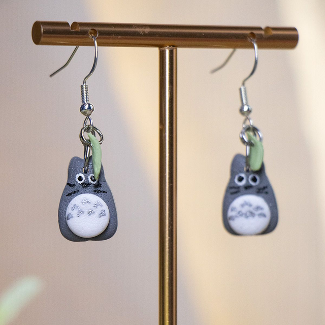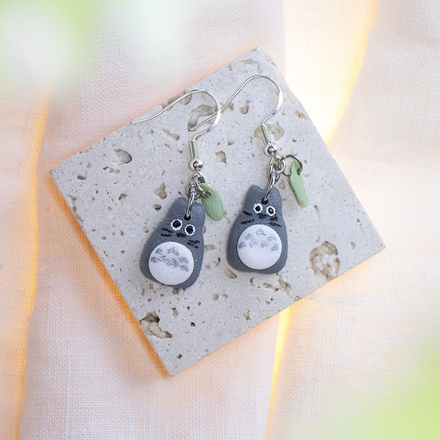 Diese handgemachten Ohrringe zeigen kleine graue, vom japanischen Anime-Genre inspirierte Waldgeister mit liebevollen Details und zarten Blattanhängern. Leicht, verspielt und perfekt für alle, die Natur, Fantasie und handgefertigten Schmuck lieben.